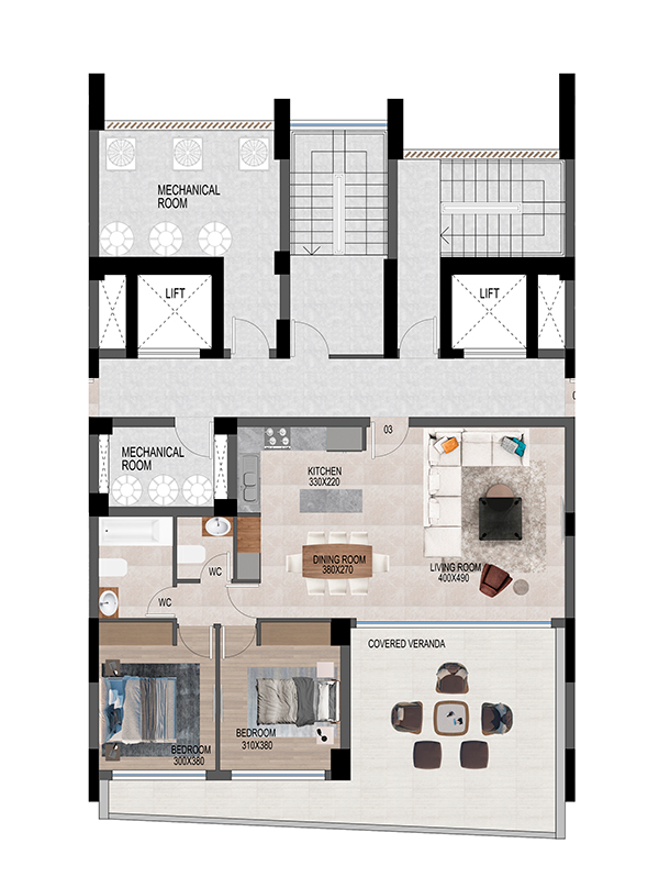 The 13-floor Tower includes an exclusive penthouse with a private rooftop swimming pool, as well as 39 luxurious 2 and 3-bedroom apartments with spacious interiors and covered verandas so residents can enjoy the cool sea breeze and invigorating year-round Mediterranean sunshine. All apartments boast premium finishes and high-end features, designed with resident comfort and exceptional island living in mind, accommodating to every possible everyday need for families, couples or individuals.