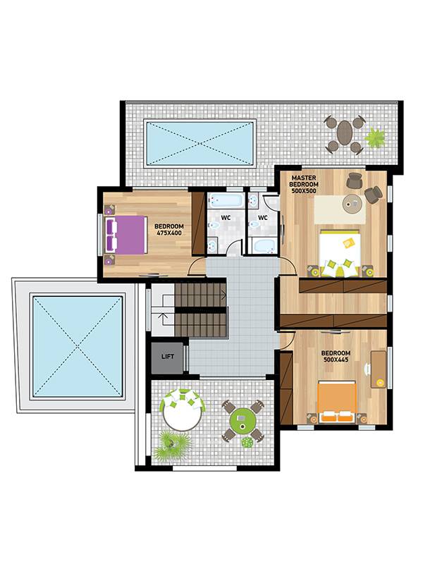 All villas include private parking, private green gardens, swimming pool, outside sitting area and large balconies. The homes are gated, secured and surrounded by tranquil nature providing a vibrant feel of sublime relaxation.