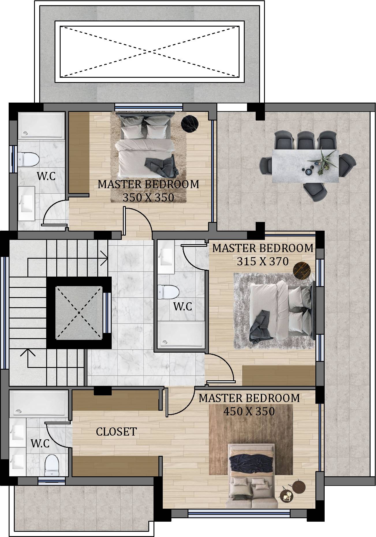 The outstanding three to five-bedroom villas were created with great attention in every detail, designed to carry a well-furnished exclusive, modern glance, highlighted with high-end finishes throughout.
