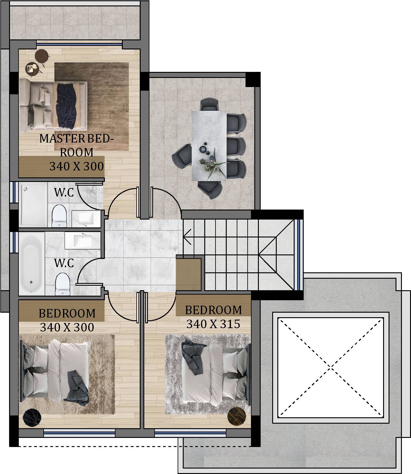 The outstanding three to five-bedroom villas were created with great attention in every detail, designed to carry a well-furnished exclusive, modern glance, highlighted with high-end finishes throughout.