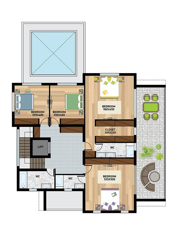 Total Covered Areas: 415 sq m