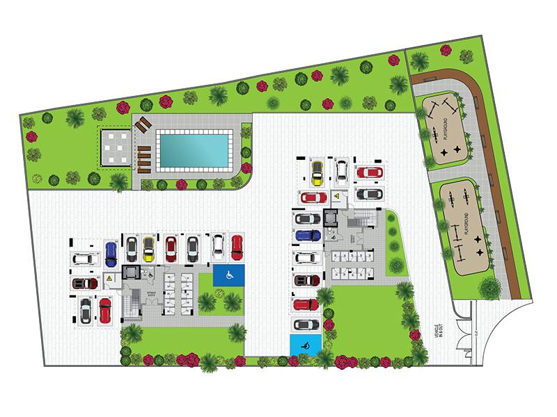 | Flat No | Plan | Bedrooms | Covered Area (sq m) | Covered Veranda (sq m) | Total Covered Area (sq m) | Store Room (sq m) | Uncovered Veranda (sq m) | Covered Parking (sq m) | Status |