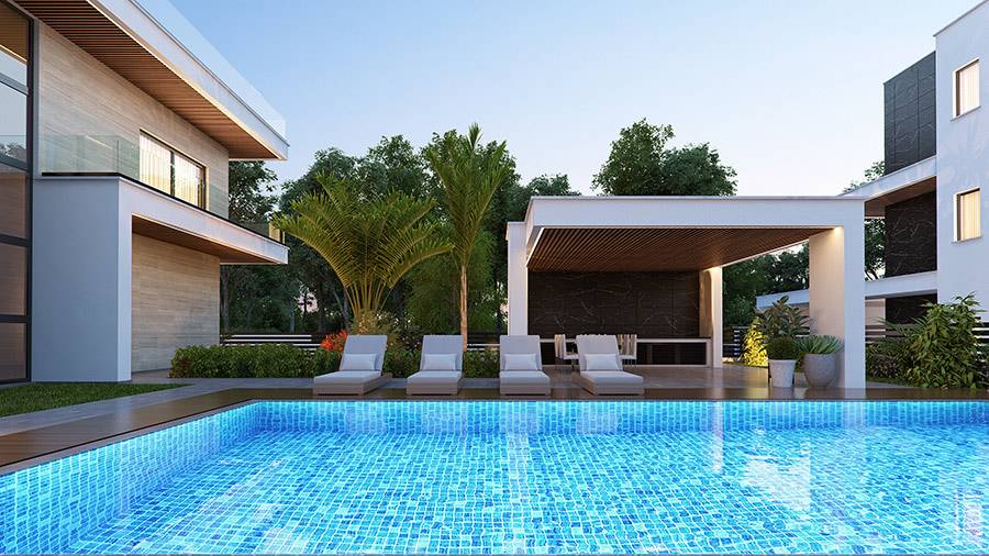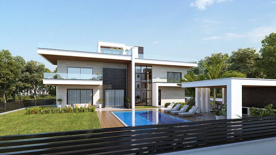 In an exclusive residential setting on the Hill of Agios Tychonas just at the entrance of Limassol, M. Residences welcomes you to a set of ultra-lux villas that invite you to enjoy the best of Cyprus living. Located only a few minutes from the Limassol beachfront with its 5-star hotels, and a short drive from Limassol Marina, the mall and the casino, the two eye-catching villas offer a choice of four or five bedrooms in a generously designed multi-storey configuration.