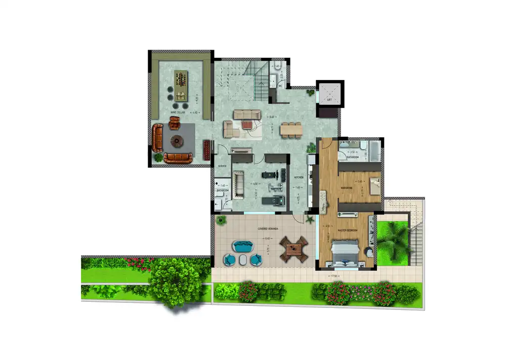 | Villa No | Bedrooms | Ground floor (sq m) | First floor (sq m) | Basemant (sq m) | Roof Garden (sq m) | Total Covered Veranda (sq m) | Covered Parking Space (sq m) | Total Covered Area (sq m) | Uncovered Veranda(sq m) | Plot Area (sq m) | Private RD (sq m) | Status |