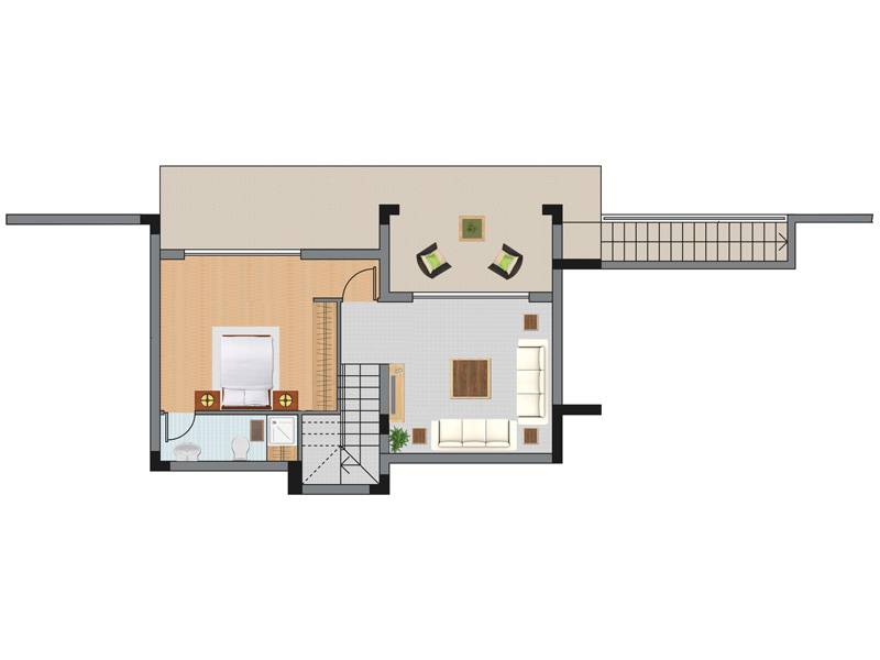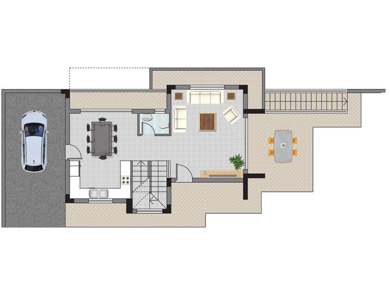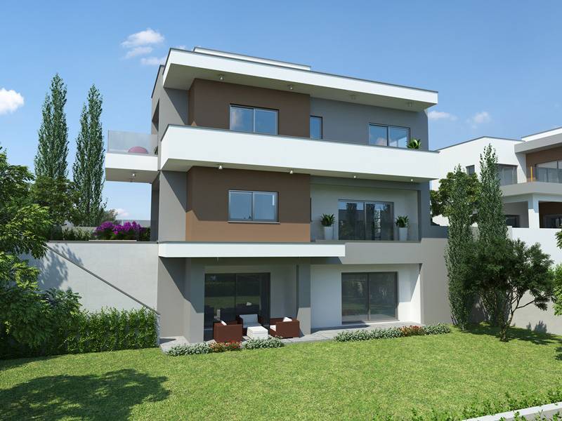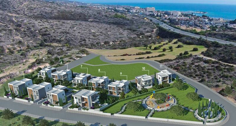 The two and three level houses with full sea views, each host their own private parking and garden, in addition to sharing a green lawn, and a children’s playground for more space and comfort.