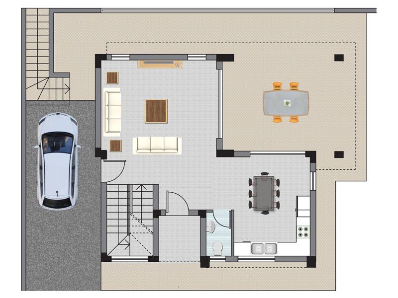 The two and three level houses with full sea views, each host their own private parking and garden, in addition to sharing a green lawn, and a children’s playground for more space and comfort.