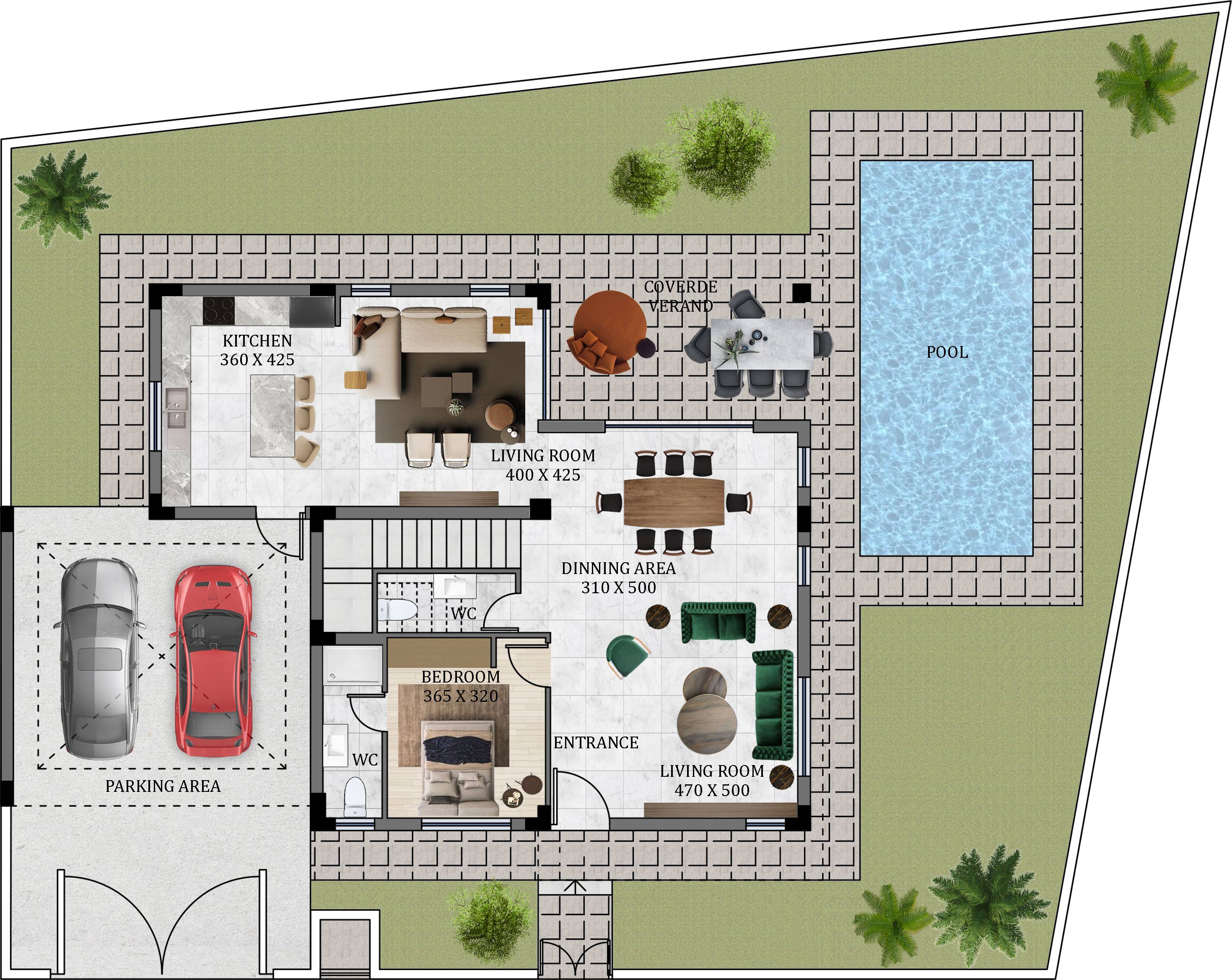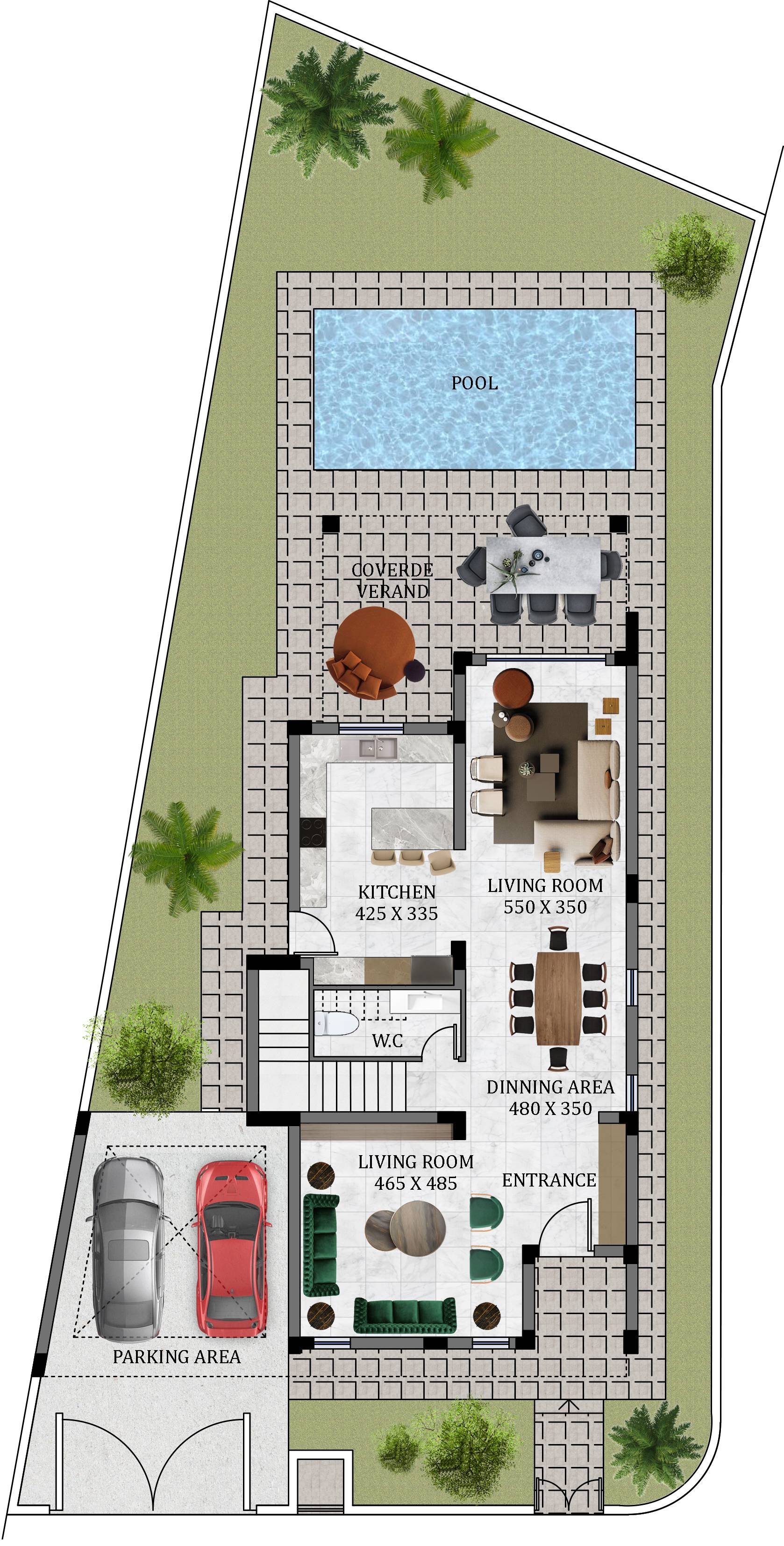 The two and three level houses with full sea views, each host their own private parking and garden, in addition to sharing a green lawn, and a children’s playground for more space and comfort.